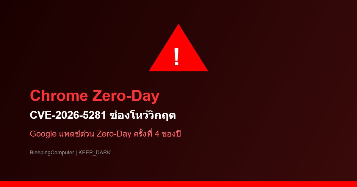 Google ออกแพตช์แก้ไขช่องโหว่ Zero-Day ใน Chrome เป็นครั้งที่ 4 ของปี 2026 หลังพบว่าช่องโหว่ CVE-2026-5281 ถูกนำไปใช้โจมตีจริงในวงกว้าง ช่องโหว่นี้เป็นประเภท Use-After-Free ใน Dawn ซึ่งเป็นการ implement มาตรฐาน WebGPU ของ Chromium